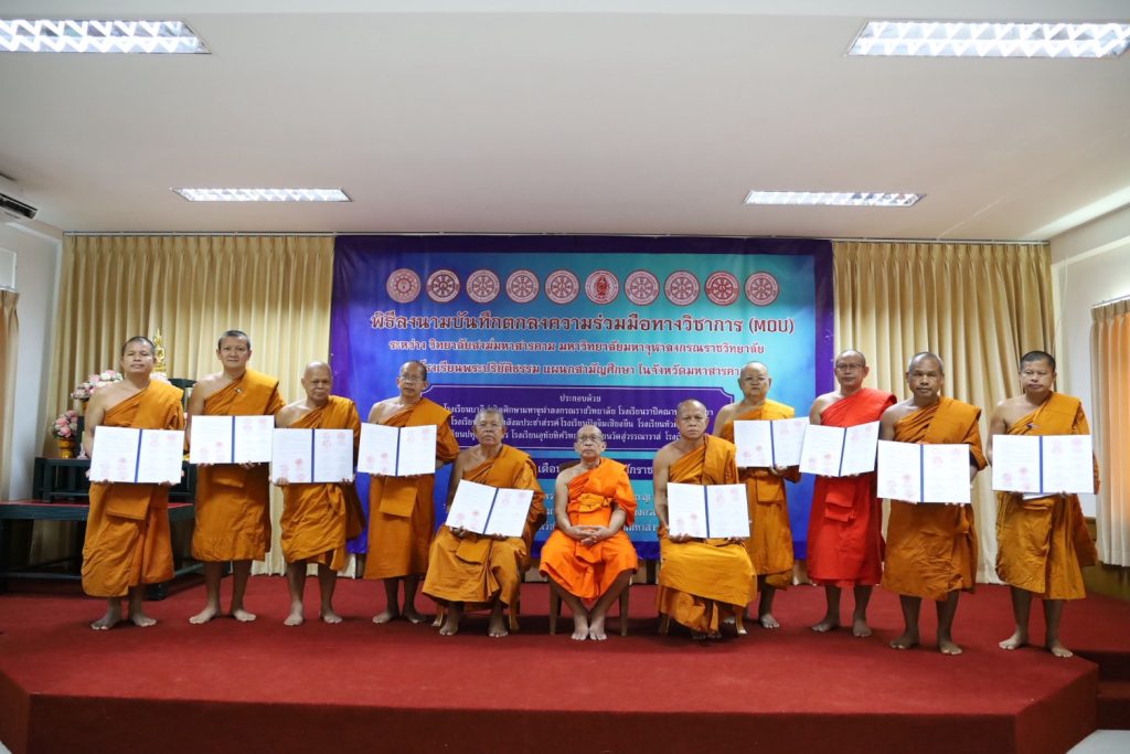 พิธีลงนามบันทึกข้อตกลงความร่วมมือทางวิชาการ (MOU) ระหว่างวิทยาลัยสงฆ์มหาสารคาม กับ โรงเรียนพระปริยัติธรรม แผนกสามัญศึกษา ในจังหวัดมหาสารคาม ทั้ง ๙ แห่ง