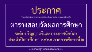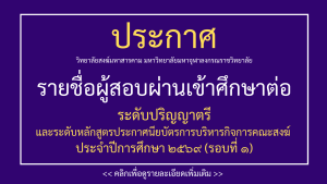 ประกาศรายชื่อผู้สอบผ่านคัดเลือกบุคคลเพื่อแต่งตั้งเป็นลูกจ้างของมหาวิทยาลัย ประเภท วิชาการ ตำแหน่ง อาจารย์ หลักสูตรรัฐประศาสนศาสตรบัณฑิต