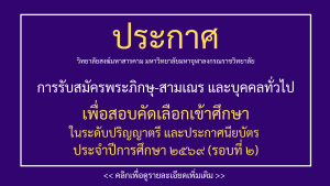 ประกาศรายชื่อผู้มีสิทธิ์สอบคัดเลือกและสอบสัมภาษณ์ เข้าศึกษาต่อระดับปริญญาตรี (รอบสอง) ประจำปีการศึกษา ๒๕๖๔